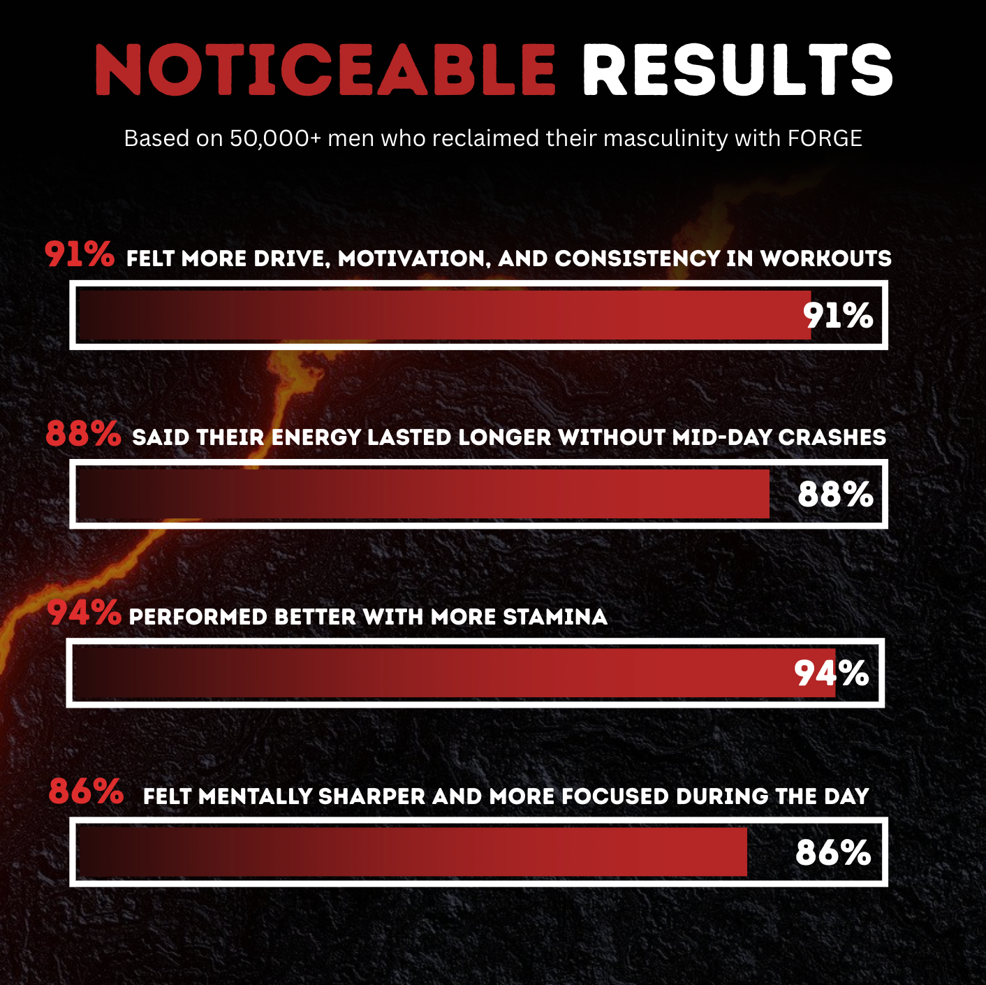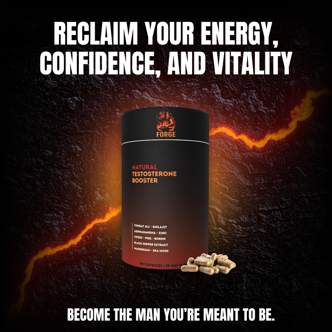 FORGE is a high-powered, no-BS formula built to reignite male vitality by targeting the root causes of low testosterone with clinically-backed ingredients like Tongkat Ali, Shilajit, Ashwagandha, Boron, and more.