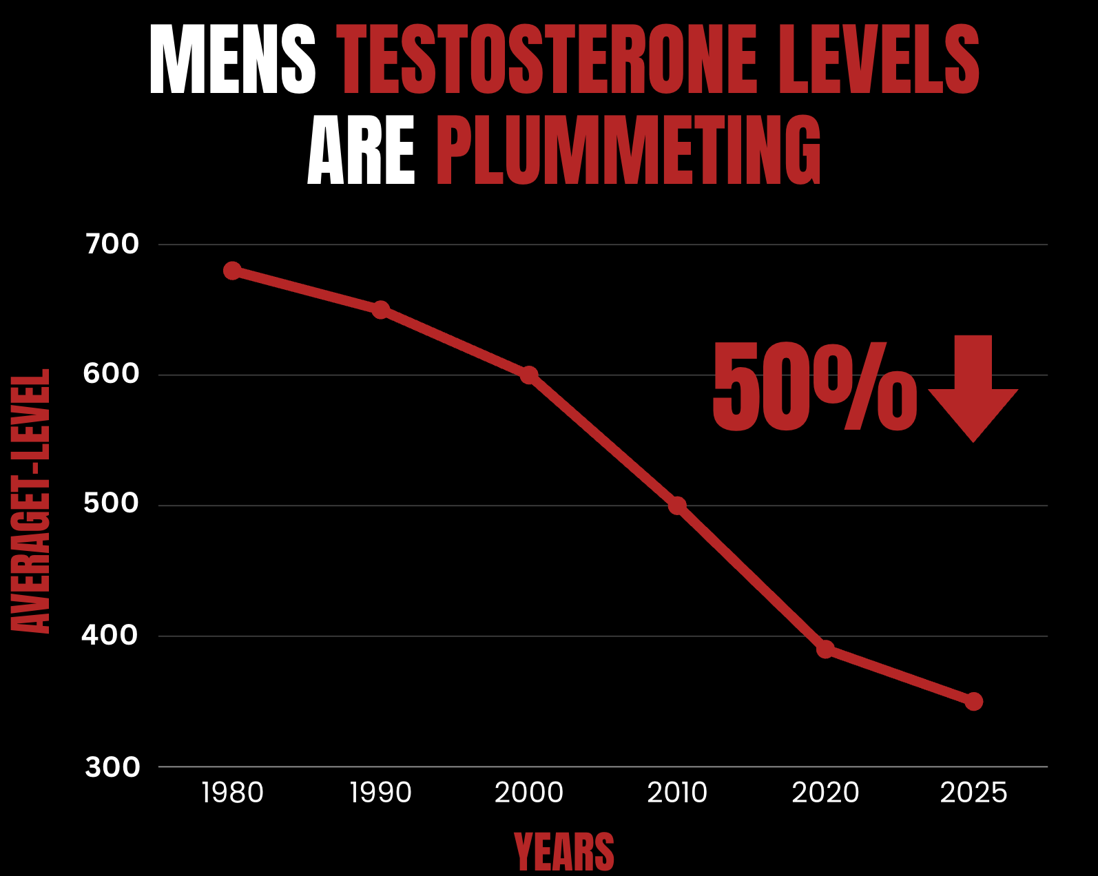 Since the 1980s, men’s testosterone levels have dropped by up to 50%, leaving millions feeling tired, unfocused, weak, and disconnected from who they used to be.